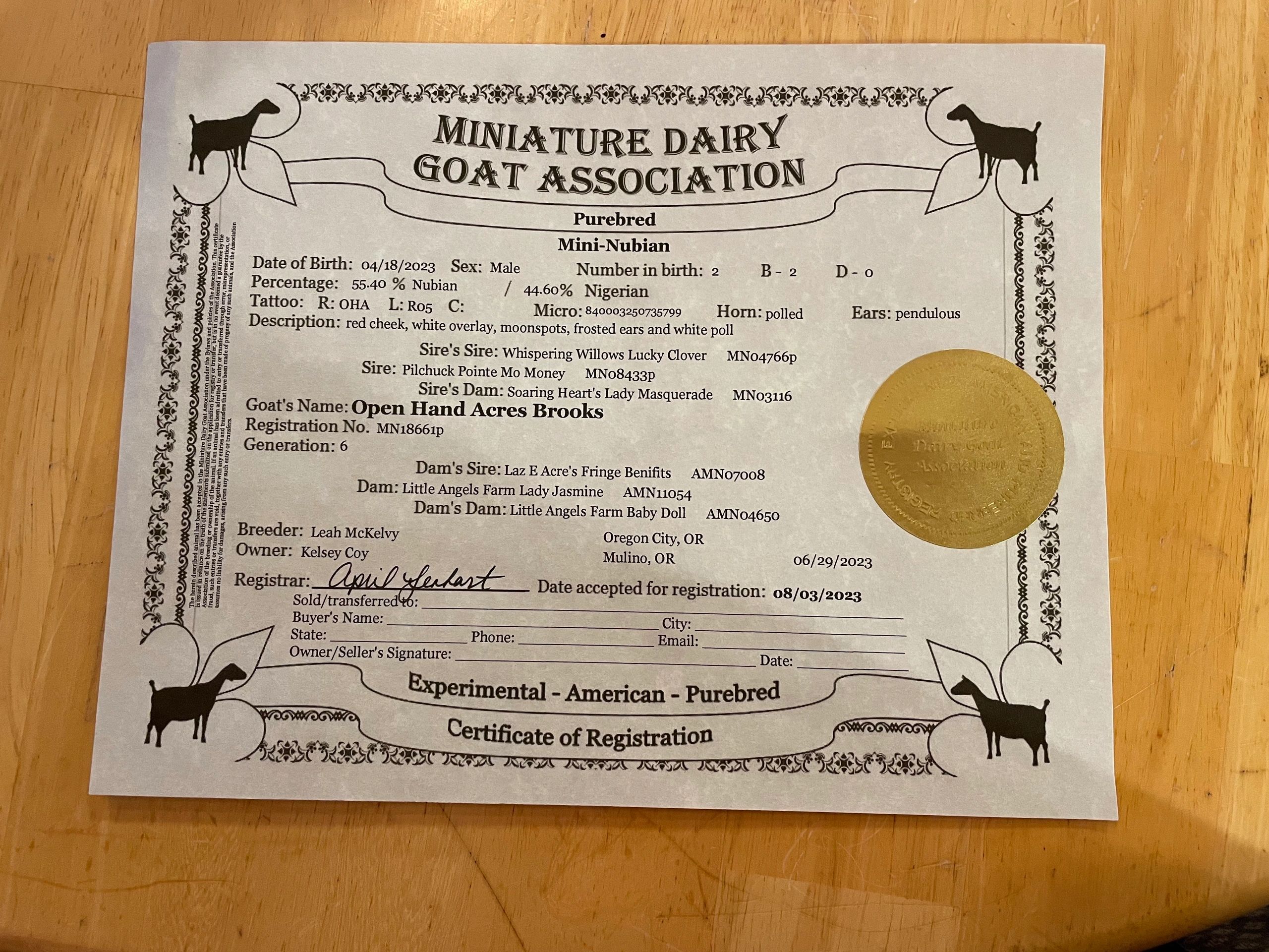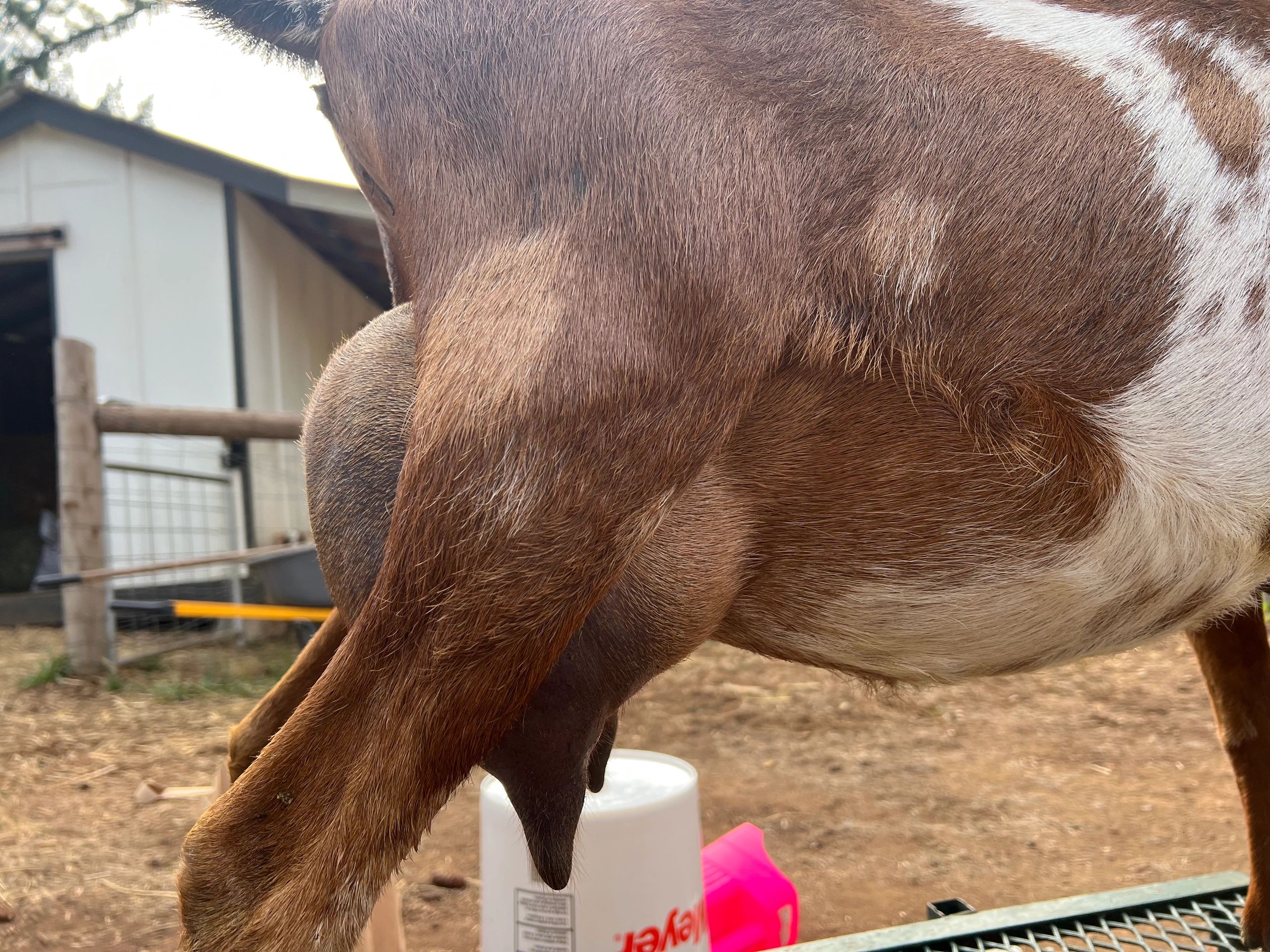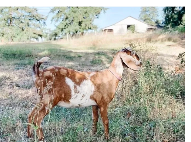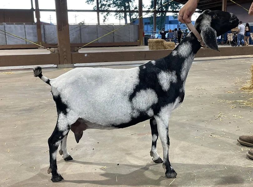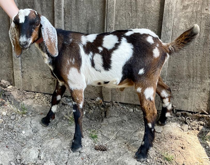 Brooks is a flashy, polled buck with amazing topline, head and ear. He is super friendly and loves attention. He is the perfect package and we are excited to see what he produces on the farm in the future!