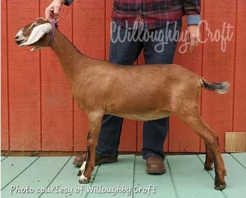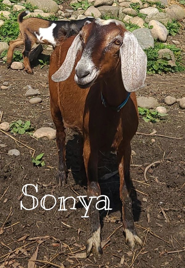 Sonya is the newest doe on our farm. She has excellent milk lines on both sides of her pedigree, a nice wide body and great dairy confirmation. She has been shown in 4-H and FFA and we are excited to see what she does for us here at Heritage Hill!